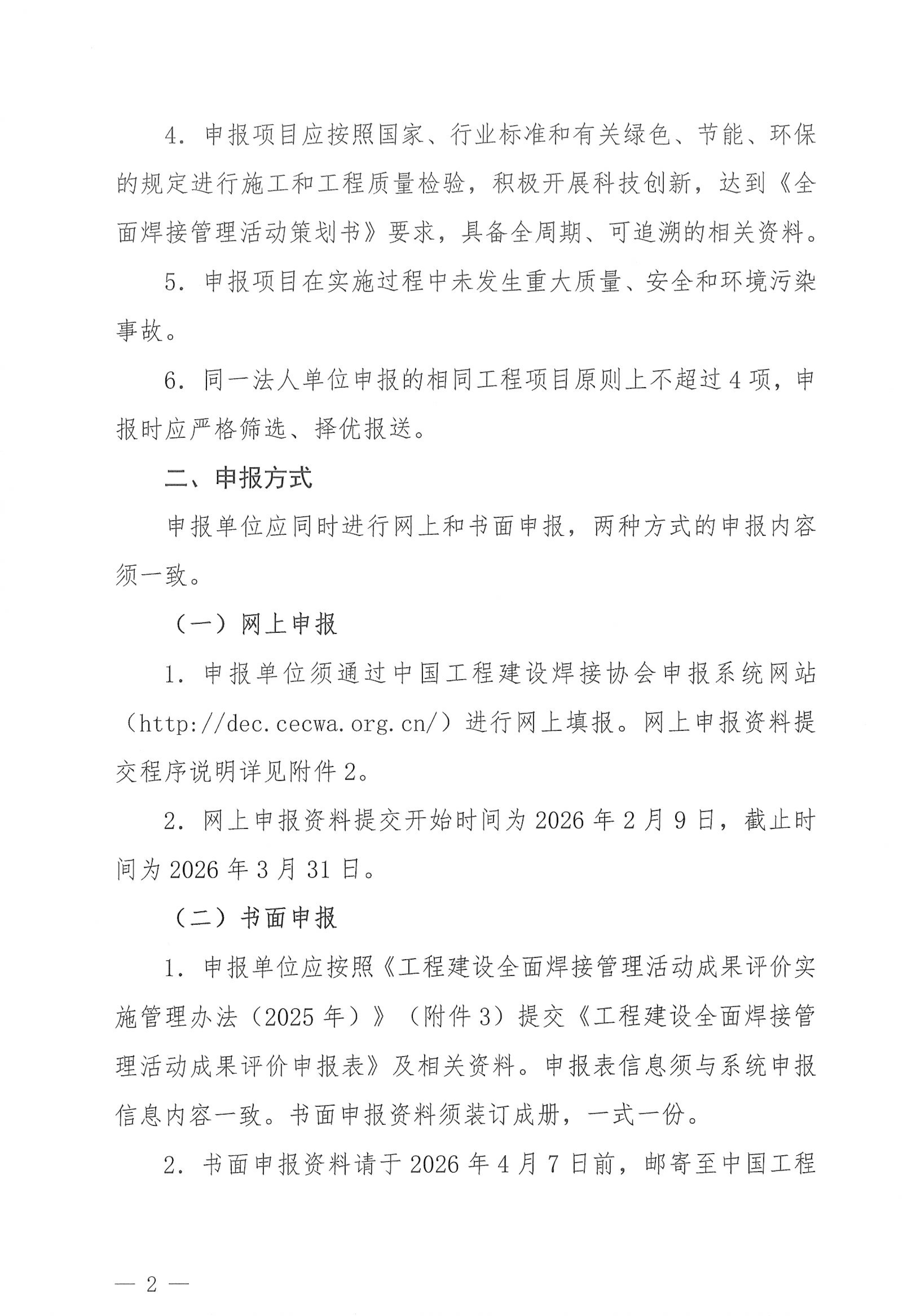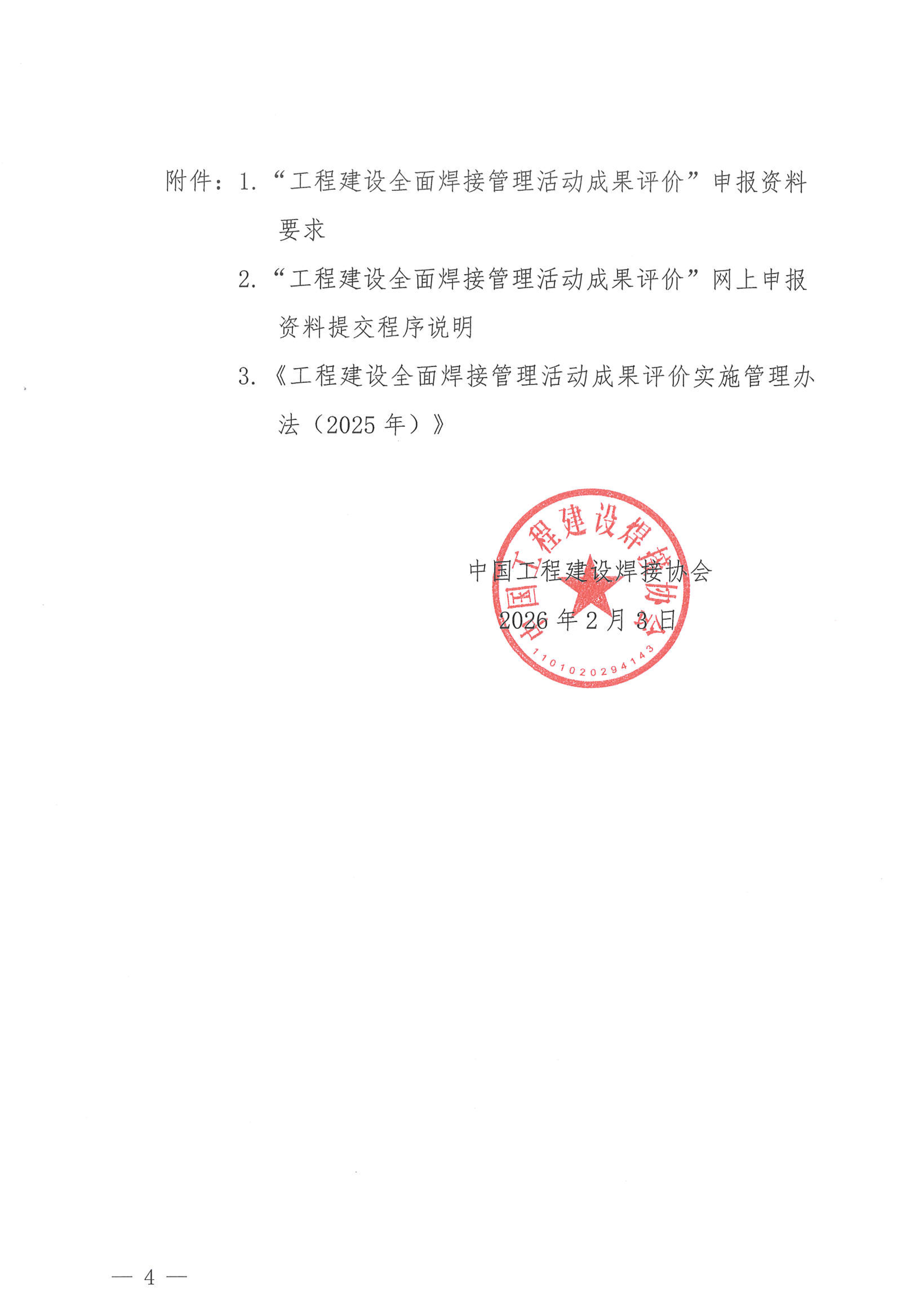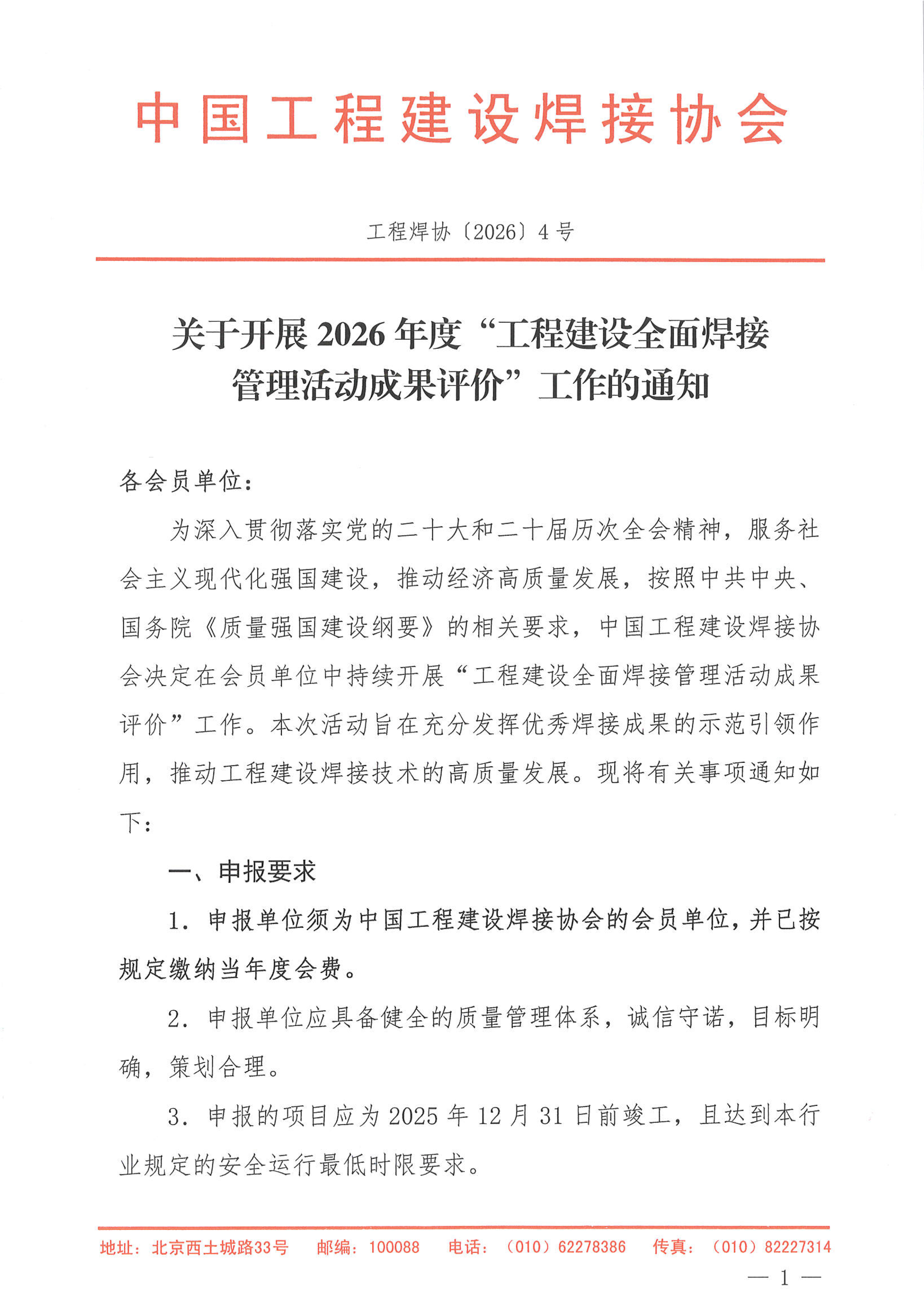 关于开展2026年度“工程建设全面焊接管理活动成果评价”工作的通知