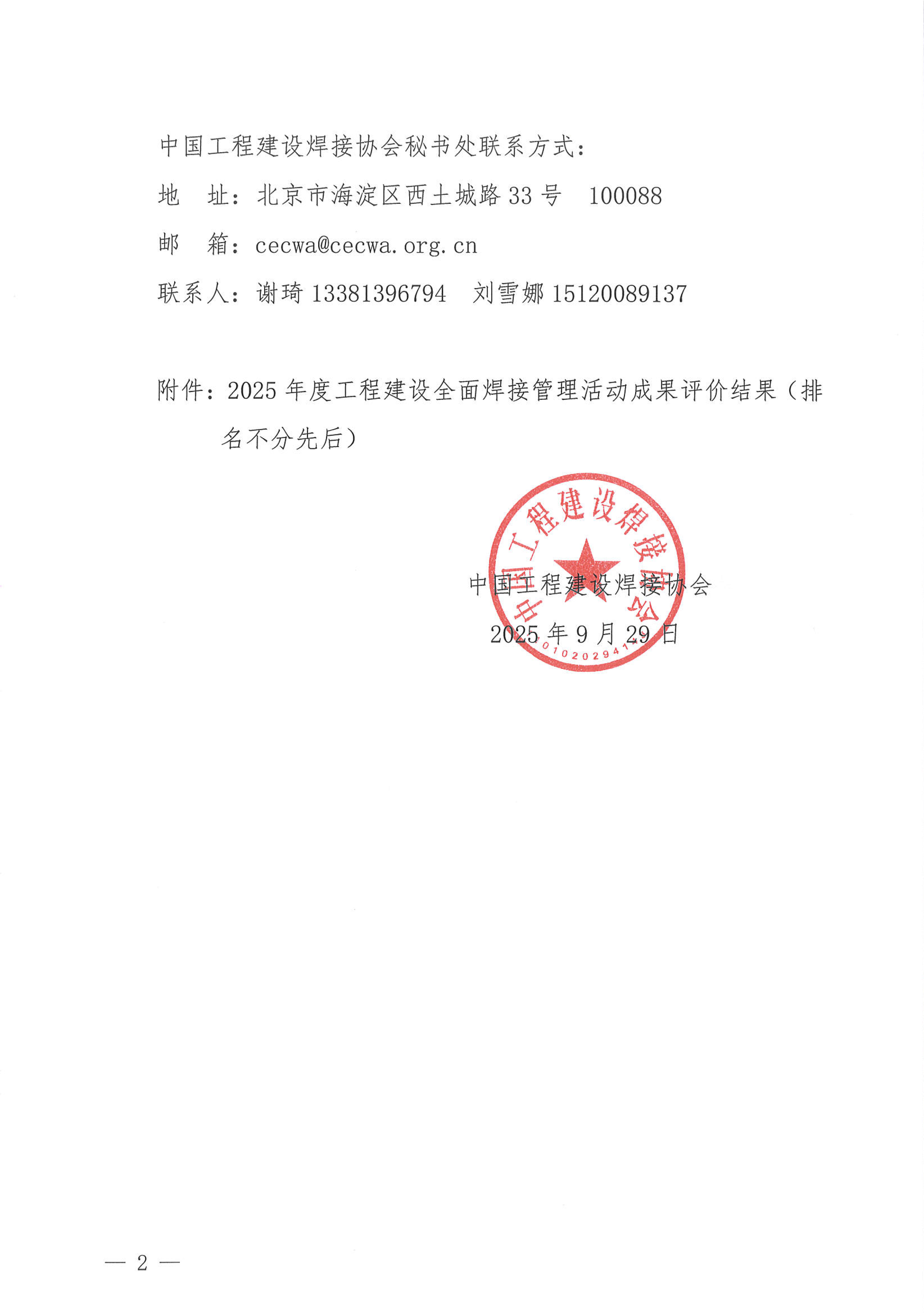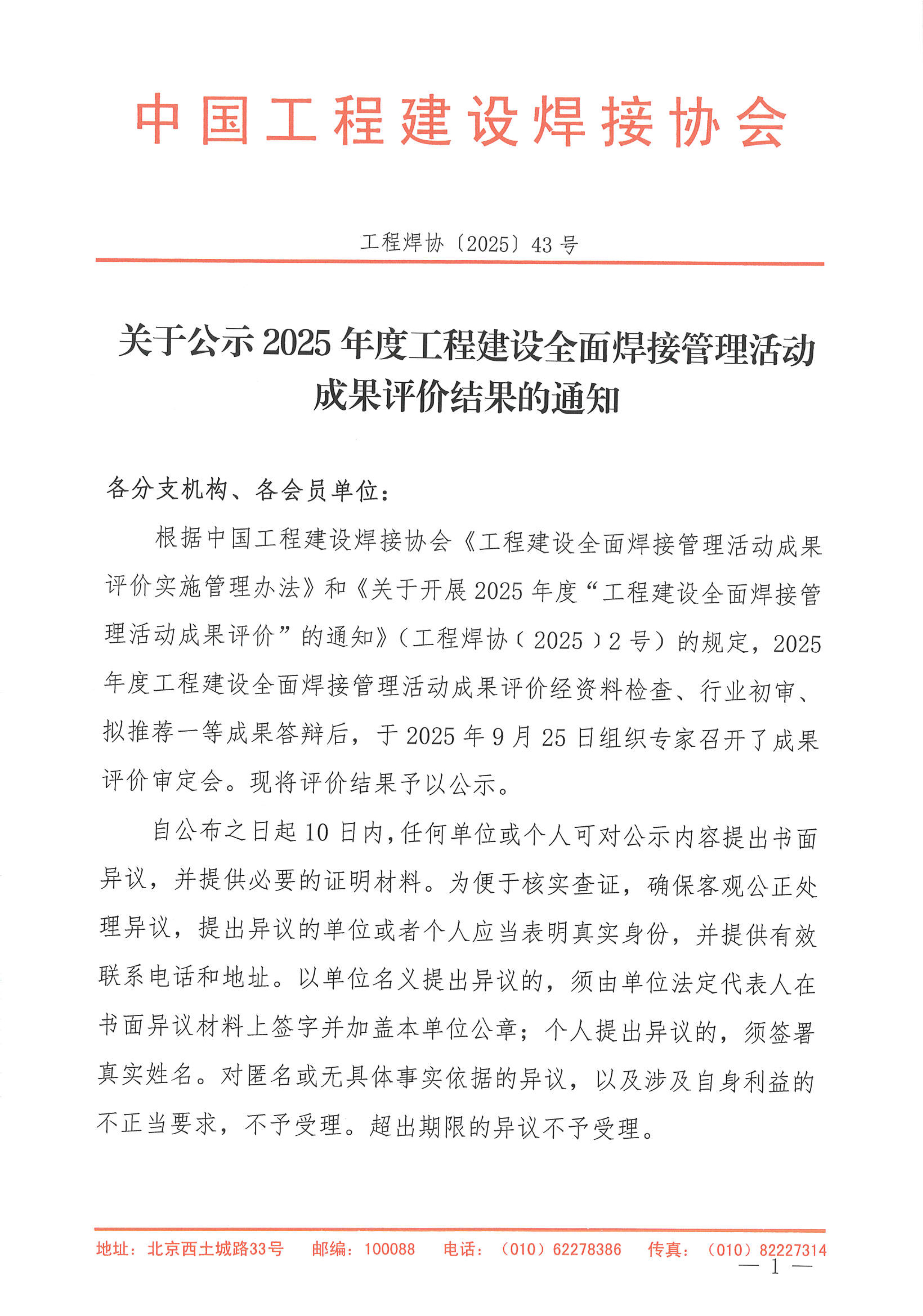 关于公示2025年度工程建设全面焊接管理活动成果评价结果的通知.pdf