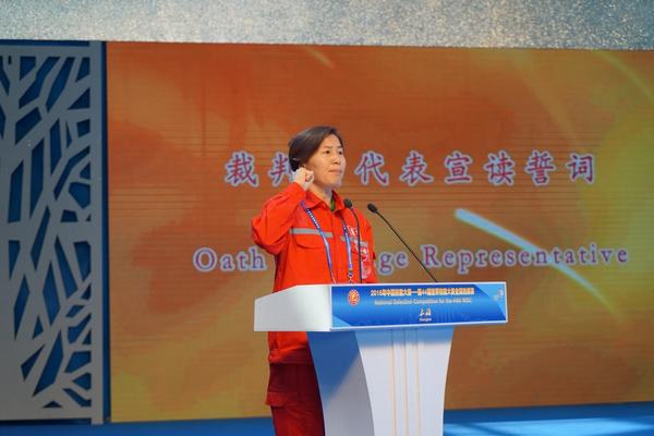 刘景凤秘书长作为焊接项目的裁判长代表全体裁判员宣誓